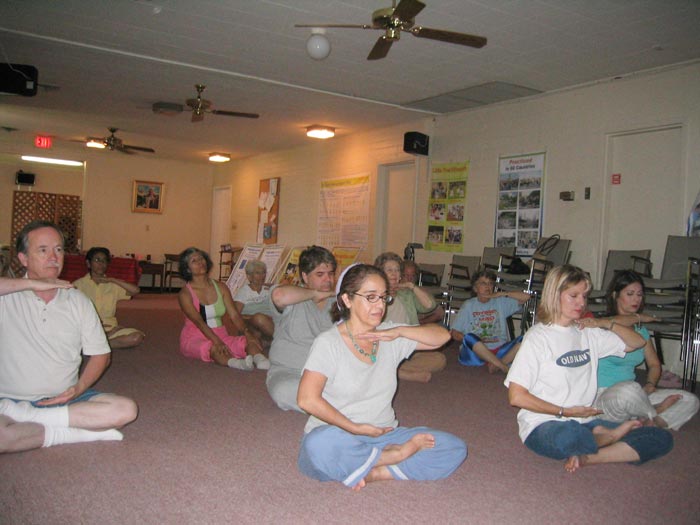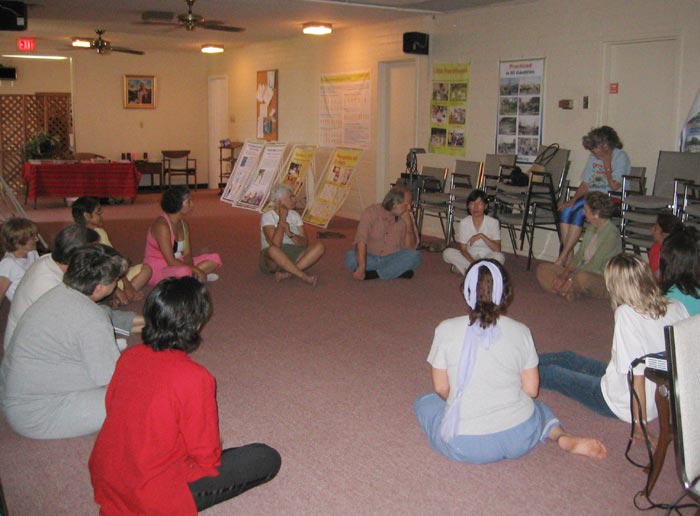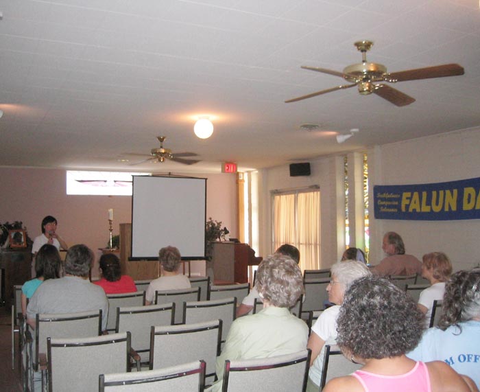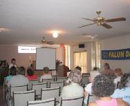 最后大家围成一圈席地而坐,开始了心得交流与问答。教会牧师当场提出要在当地成立一个炼功点,继续学炼法轮功。该教会一位女士,几个月前有缘在奥斯汀接触了法轮功并已开始阅读《转法轮》,她说“这就是我要找的,我要一直修炼下去。”有人对修炼要去执著已有了初步的概念,也有人对中共江氏集团迫害法轮功表示震惊。学员感受到这些渴望在精神与心灵上提升的善良纯朴的人们,有幸接触法轮功后,已经找到了毕生追寻的目标。许多人在离去时,握着学员的手再三感谢。有些人坚持要捐钱,学员感谢其好意而予以婉拒。