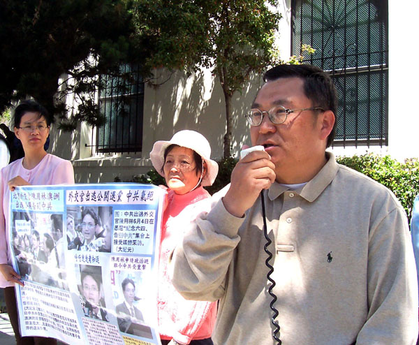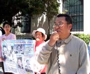 居住在旧金山的法轮功学员潘军,特意赶来参加记者会,他表示,来此是要以亲身经历,揭露中共在海外对法轮功学员的迫害。他介绍,2000年10月22日,当他与其他的法轮功学员一起,在中国城花园角炼功时,遭到一群不认识的人围殴。他当时按照法轮功所教“打不还手,骂不还口”,没有反抗;他的眼镜被打破,衣服被扯烂,鼻子被打出了血。当时被打伤的还有好几位法轮功学员。