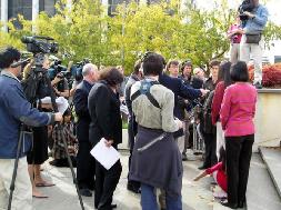 记者问:为什么该行政令签发3年过后,你们才采取法律行动?戴志珍回答说:在过去的3年里,我们尝试了不同的办法告诉外长唐纳这种证书不仅对我们这些法轮功学员是一种伤害,也是对澳洲人民的伤害,我们甚至到阿德雷德他的选区去和他谈,到外交部门外发资料,進行和平呼吁,但是这一切显然没有效果,就在上个月他还在签署这个行政令,所以我们不得不采取法律行动,来制止他的这种不合法的行为。