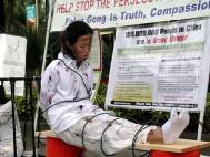 下面是反酷刑展期间,学员讲真象及征集签名时发生的小故事: