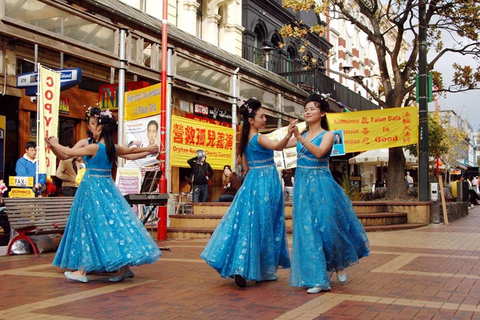 【明慧网2005年6月13日】2005年6月11日,新西兰法轮功学员在首都惠灵顿市中心古巴街举办义演营救在中国因中共
