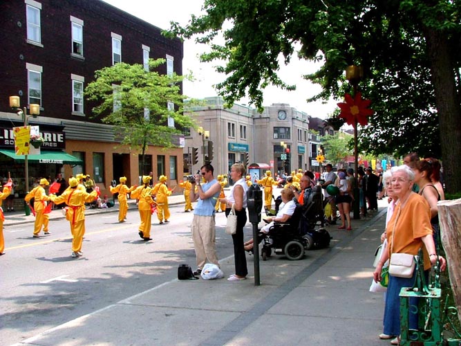 街道两旁的观众也有一定比例的中国人。渥顿市(Verdun)近几年来涌進了大批的中国新移民,号称蒙特利尔的“第二个唐人街”。许多中国人在众多的西人队伍中看到以华人为主的法轮功队伍很高兴,鼓掌欢迎。