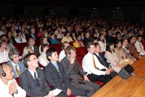 慈悲伟大的师父给欧洲法会发来贺电,全体与会大法弟子深受鼓舞。