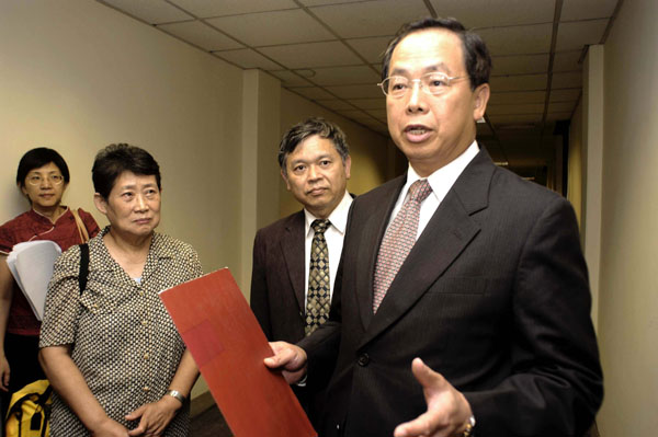 15日下午法轮大法学会顷获新加坡驻台办事处电告本日17时可再度前往,该处助理代表陈基础出面接见。