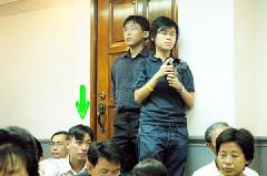 ![]() 保安人员(站者二位及箭头指处)参加大组交流 | ![]() 身穿蓝色上衣手拿相机即为保安人员 |