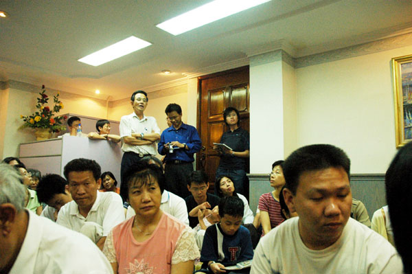 他特别提到,以往多次出国旅游至各国饭店时并未要登记自己本国居住地址,但此新加坡旅馆竟要求所有登记住宿的每个人签写居住地址,还说写中文也可以。另6月11日晚上的大组集体交流时,约八点多时来了四位(三男一女)东陵警署保安人员要求参加这场交流活动。法轮功学员表示,他们的任何活动都是公开的,很欢迎他们来参加与了解。惟在交流过程中他们不断的拿着小型录影机,摄录发言的学员及在场的所有人。