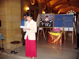 还有一位议员,当4四岁半的小弟子把所有的资料整整齐齐的叠在一起递给她时,她特别高兴,还在别的议员面前显示,这样另外几位议员也主动过来跟小弟子要资料,还认真的读了资料。当这位议员要回家时,学员们正好在外面又碰到了她,她还特意从车上下来跟法轮功学员们说声“谢谢!”。