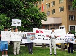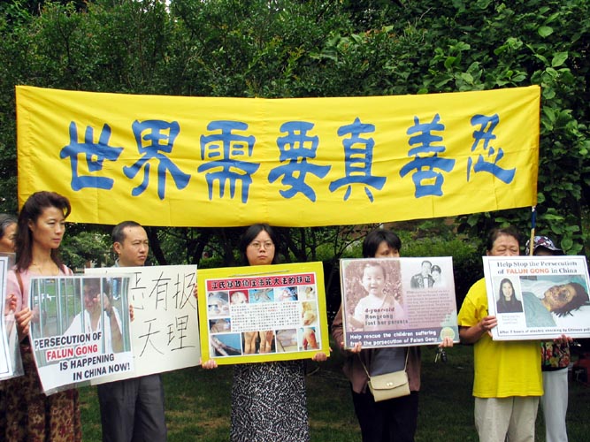 ![]() 法轮功学员宣读声明 | ![]() 华府学员中使馆前抗议 |