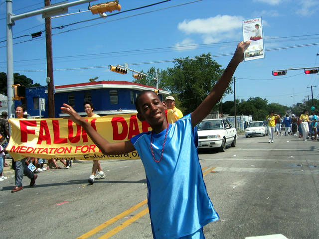 【明慧网2005年6月22日】2005年6月18日,美国德克萨斯州法轮功学员参加了奥斯汀一年一度的Juneteenth大游行,向上万的美国黑人民众介绍什么是法轮功以及中共江氏集团