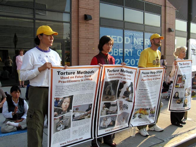 对于纽约地区许多看过法轮功学员“反酷刑展”的市民来说,高蓉蓉这个名字并不陌生。37岁的高蓉蓉,因不放弃修炼法轮功几年来受尽迫害,曾被关入劳教所,遭受长达7小时连续电击折磨致使面部毁容。高蓉蓉的故事和她被毁容前后的照片近一年来在纽约曼哈顿街头讲真象活动和反酷刑巡回展中到处可见,揭穿了中共当局在国内外散布的所谓“和谐社会”,“对法轮功学员春风化雨”的谎言。许多纽约民众听到一个年轻女子无辜遭受如此残害无不发自内心的感到愤怒。