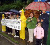 【明慧网2005年6月23日】2005年6月21日下午,部份英国学员聚集在伦敦的中使馆前,抗议中共酷刑虐杀法轮功学员高蓉蓉。