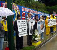 今钟先生说的对,在整个活动过程当中,对面中领馆的工作人员们一直站在窗户后面观看聆听,面对高蓉蓉被虐杀的事实和法轮功学员们的强烈谴责,希望他们能够做出正确选择。同时法轮功学员还表示,他们将继续举行对中共这一暴行的抗议活动,呼吁停止迫害,停止虐杀。