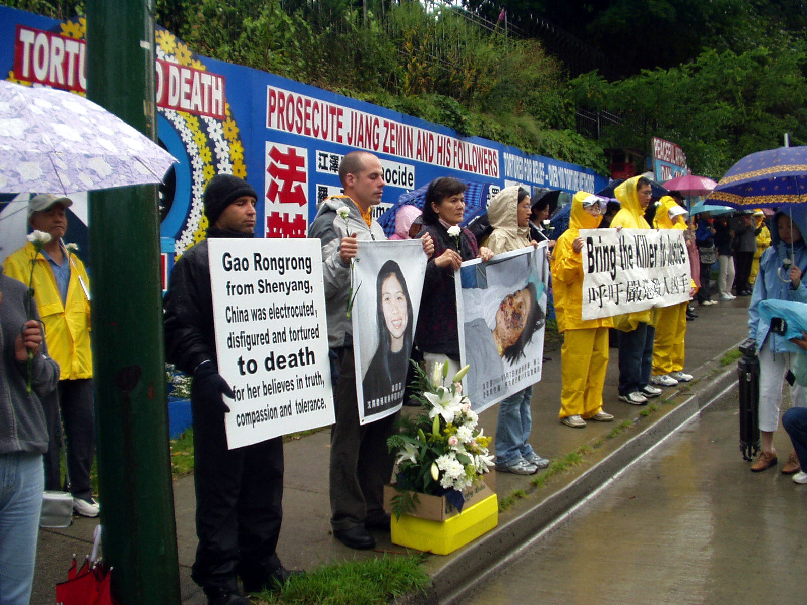法轮功学员强烈谴责中共暴行,并强烈要求缉拿将高蓉蓉毁容的唐玉宝和姜兆华、及将她迫害致死的杀人凶手,停止迫害。法轮功学员希望中共使领馆的官员们不要助共为虐,作中共的陪葬品,用自己的良知和人性来选择自己的未来。