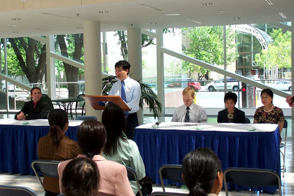 此外一名黄姓学员讲述了自己因为向来访的黑龙江省官员讲述法轮功真象而被亚伯塔省政府无理辞退的事情。一名西人学员则讲述了位于卡尔加里市的中领馆官员如何利用各种渠道和方式散发诋毁法轮功的仇恨宣传材料。