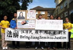 一些路人驻足观看,并接受了真象资料。一位路过的中年妇女在看了有迫害照片的展板后不断的用手在胸前画十字,虔诚的为学员祈祷,同时在征签表上写上自己的名字支持反迫害。也有不少来中领馆办理签证事宜的中国人和英国人拿了真象资料并观看了介绍法轮功受迫害真象的展板。