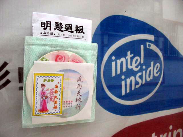 太原半坡街存车处的真象光盘、传单、护身符组合