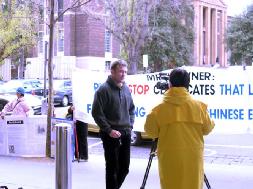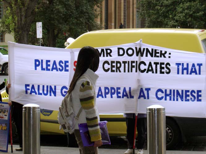 “根据中国出逃外交官陈用林的揭发,澳洲有上千中国间谍。法轮功学员一直在告诉澳洲政府他们被骚扰,澳洲政府本应该限制那些骚扰法轮功学员的中共间谍,但事实上,现在发生在澳洲的却是法轮功学员被限制。澳洲是唯一一个如此限制法轮功学员的民主国家。昨天陈用林在接受ABC电视台采访时说:每次唐纳签发证书都会得到中国大使馆的赞扬。我们认为唐纳实际上是在帮助中共镇压法轮功。法轮功学员起诉唐纳就是想从根本上解决这个问题。”