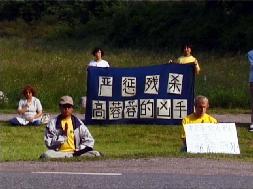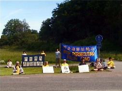 学员们打出“停止迫害法轮功”、“严惩残杀高蓉蓉的凶手”的横幅,手持高蓉蓉被毁容前后的照片及说明,威严面对中使馆,抗议中共的又一暴行。一些学员展示功法,还有的向行人发放真象资料和说明真象,呼吁人们关注中共对法轮功的这场灭绝人性的迫害,认清中共的邪恶本质。