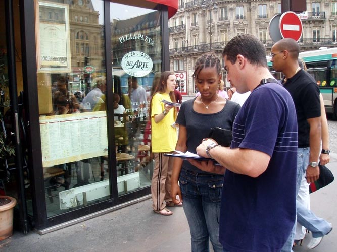 这一地区是巴黎塞纳河北岸的商业中心。广场以北有圣•拉扎尔火车站、巴黎高等音乐学院(Conservatoire de Paris)及大批乐器行;南面有著名的巴黎歌剧院(Opéra)和“拉法耶特”(La Fayette)、“春天”(Printemps)等大型商场,西面的旅店群和东面的弗纳科书店(Fnac)坐落在广场两旁。这些得天独厚的地理优势吸引了众多的巴黎市民和各地游客,也为我们带来了大量听闻法轮大法真象的人群。