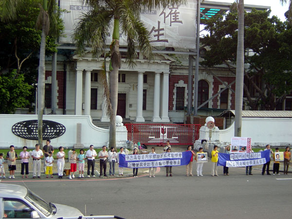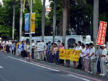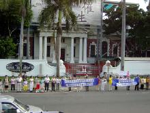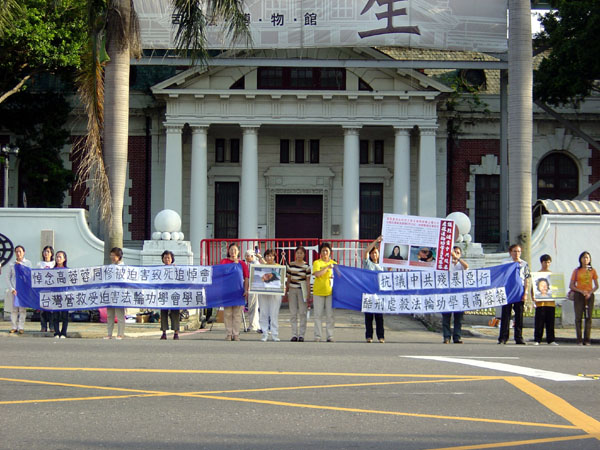 ![]() 学员们手持白色鲜花哀悼 | ![]() 学员们呼吁制止迫害 |