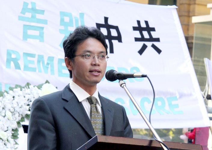 近日,陈用林还现身在悉尼市举行的“6.4”十六周年纪念活动集会现场,表达他脱离中共的决心。