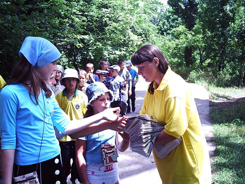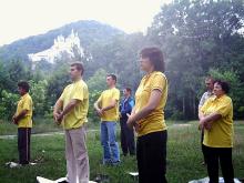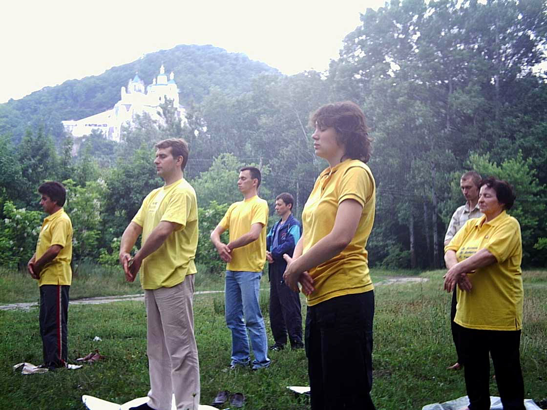 日,乌克兰康斯但丁诺夫、北顿涅茨克和拉马朵儿斯克市的法轮功学员在乌克兰著名的“拉夫尔圣山”一同举行了反