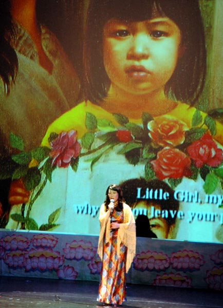 ![]() 著名女高音歌唱家姜敏为此次义演唱了一支新歌:流浪的女孩 |