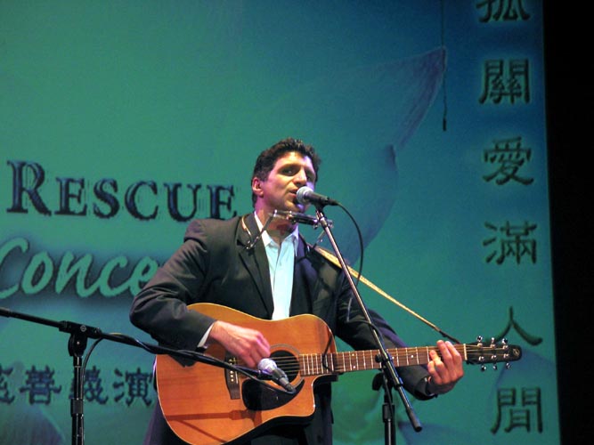 活跃在美国东海岸的著名流行歌手汤姆.福提(Tom Foti)是在42街法轮功学员演示的酷刑展上看到有关中国孤儿情况介绍的。这位通俗音乐家的心被深深打动,特为中国被非法关押的法轮功学员写了一首歌曲《特赦》(Amnesty),并于此次义演中演唱。
