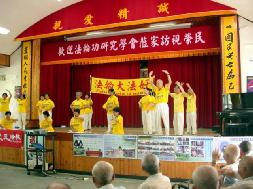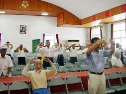 学员们除了登台演示功法的美好外,也播放炼功画面及有趣的闪画作为辅助说明;展示功法时,现场许多荣民伯伯就不禁自发的模仿起动作;实地教功时,荣民及荣家主任、员工更是非常认真的学习,并频频询问未来如何继续学炼,会场洋溢一片祥和之气。