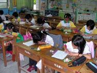 正贤:“一开学,我就跑到明慧组,虽然炼功很累,盘腿让我脚好酸,但是我要炼到脚不累,就会很好喔!长大后,我要叫我小孩也参加明慧组──学法炼功。”