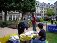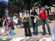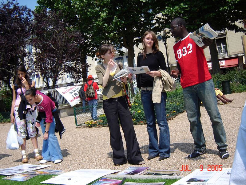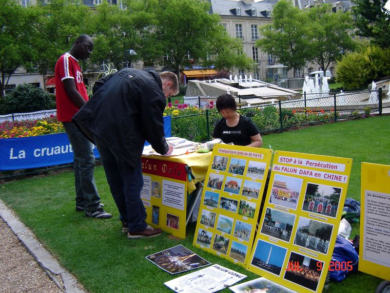 几位中学生在反对迫害法轮功的征签表上签字后并在留言簿上写下了“他们(迫害法轮功的坏人)应该尊重人权,应该让法轮功学员获得自由,中国应该象法国一样让人们享有自由,不应该有区别”;