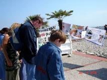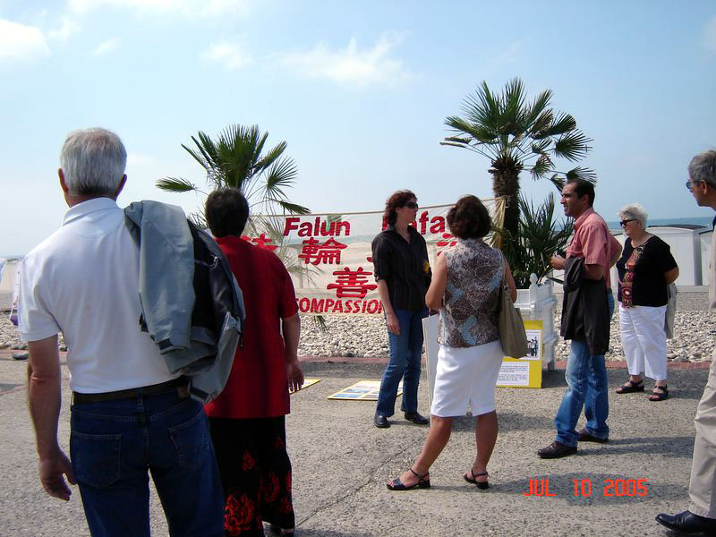 展位上优美、舒展的功法演示,吸引着来往游人好奇和赞赏的目光,“这应该是一种使人精神放松的功法”,人们在谈论着;自然的靠近,進而看到旁边揭露发生在中国的酷刑迫害的图片介绍:鲜明的反差,使人们更想来了解这场迫害的真正原因:如此美好的功法何以受到这样的迫害和镇压?
