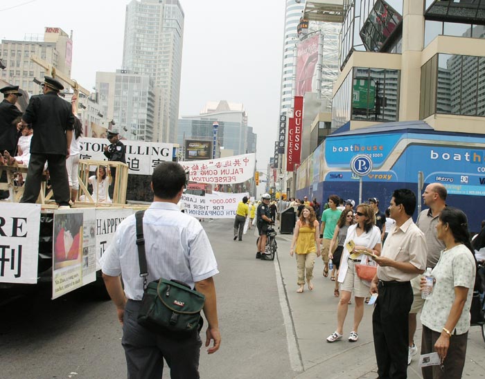 另外,大多伦多市中华会馆主席洪世忠,当地代表东南亚社区的社区活动家克来门-罗基国也在集会上讲话谴责中共对法轮功的镇压,并随同走完游行全程。这次活动吸引了包括CTV,CBC,新时代电视,新!唐!人:等在内的加拿大主要媒体前来采访。