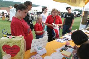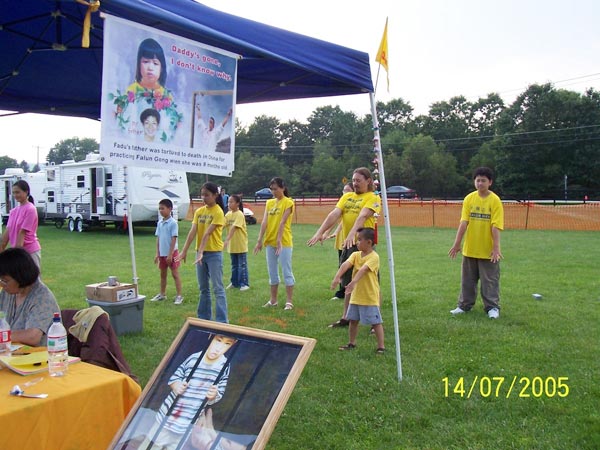 法轮功而在中国大陆沦为孤儿的孩子们,并讲清法轮功真象, 2005年7月15日-17日,纽约上州部份法轮功学员参加了当地社区活动,社区人士不分男女老少, 纷纷签名支持法轮功。