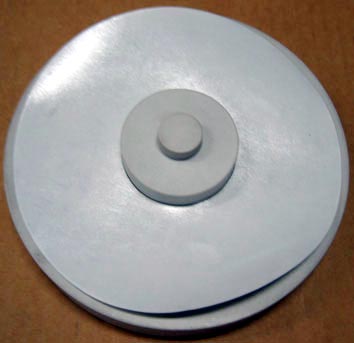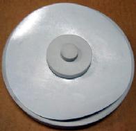 4. 将光盘贴背胶面向上放在光盘托架上,小套筒有两个直径,大的就是光盘贴的直径,小的是光盘的内径。