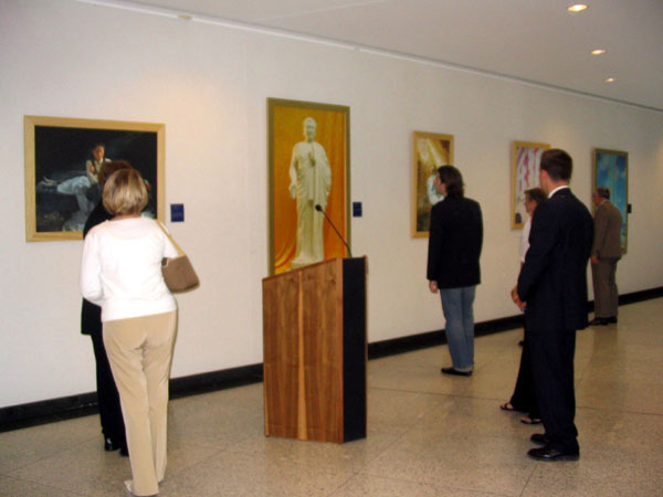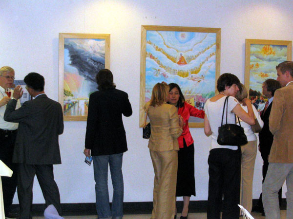 开展的第一天就吸引了众多的来自欧盟25个成员国的官员及欧洲议会的工作人员前来欣赏,不少人流连忘返,有的还特意回来几次观赏。很多人被作品所表现的境界所震撼,赞叹不绝。有的表示不敢相信,中国竟然正在发生这么残酷的迫害?