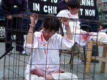 扮演受迫害学员的另一位大法弟子,是在丹麦获得博士学位,如今从事科研工作的工程师林女士。她说:长时间坐在铁笼子里,或者演示吊刑,虽然与中国的受迫害同修所遭受的痛苦是没法比,但身体还是要付出比较大的承受。我愿意用自己的承受,来唤醒人们的正义,良知,早日结束这场迫害。