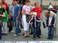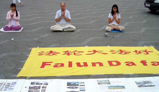 7月16日下午,部份丹麦、瑞典法轮功学员在哥本哈根市最大的广场——市政厅广场,向世人展示发生在中国的这场惨绝人寰的群体灭绝迫害罪,和法轮大法弟子在“真善忍”修炼实践中所体现的和平、坚定风貌。