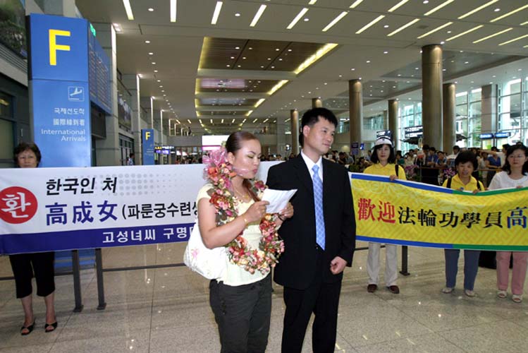 ![]() 被成功营救出来的法轮功学员高成女到达韩国 |