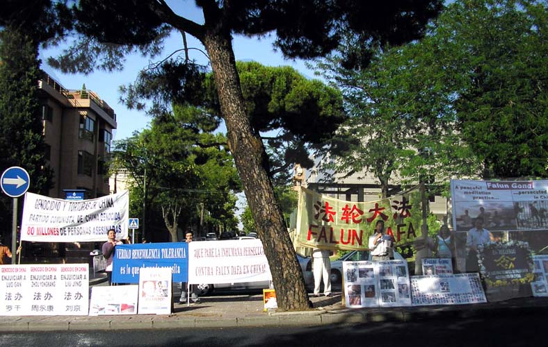 西班牙两家最大的通讯社EFE和欧洲通讯社以及国家电台、电视台等媒体来到现场对法轮功学员进行了采访。