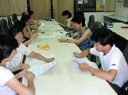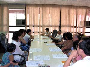 ![]() 学员们一起朗读明慧网刚发表的师父最新经文 | ![]() 学员认真的听取他人的分享,小朋友也听的入神。 |