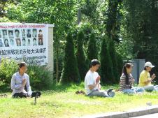 六年前的“7.20”,中共恶党头子江××在中国发动了人类历史上最邪恶的对“真、善、忍”修炼者的残酷迫害。截至目前明慧网上公布的遭迫害致死的学员人数已达2711人,实际死亡人数应高达数倍于此。就今天在中使馆前请愿的几位学员中,有在中国大陆因为为法轮功上访遭关押过的、有西人弟子到天安门讲真象被公安无理抓押驱逐出境的、有中国国内家人受恐吓、监视、骚扰的等。前不久在世界曝光的大法弟子高蓉蓉经历了长期残酷迫害并严重毁容后,又被迫害致死的事实更说明了中共恶党的残忍和流氓本性。对法轮功的这场历史上罕见的大规模镇压,其残忍手段是前所未有的。