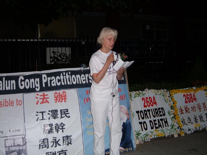 主办者讲述了6年前7月20日发生的故事:当江××发现每12名中国人中有1名炼法轮功时,便下令“使用任何手段铲除法轮功。”6年过去了,“虽然中共是一个拥有暴力国家机器、掌控全国媒体和舆论工具、具有几十年压制和奴役人民经验的专制政权,却无法战胜这个独特的民间信仰团体——法轮功。”