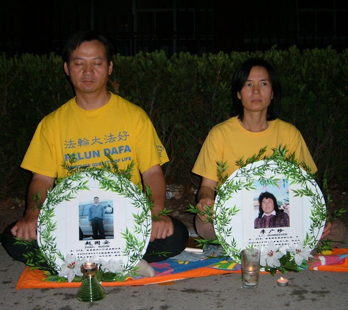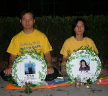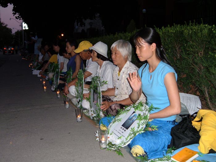另一位专业图片记者Brenna也和Peter一样,陪着这些法轮功学员和点点烛光,直到晚上10时悼念活动结束。