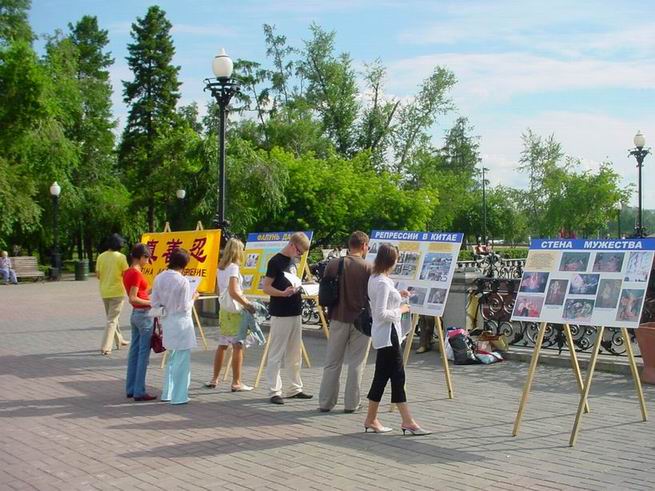 。截至目前,已确定的遭迫害致死的学员人数已达2700多人。2005年7月20日俄罗斯伊尔库斯克法轮功学员在江沿亚历山大雕像广场前举行了集会,呼吁人们对此关注并帮助制止对法轮功的残酷迫害。学员们有的炼功,有的派发真象传单,过往的行人都停步来观看真象图片展板,表示关注。