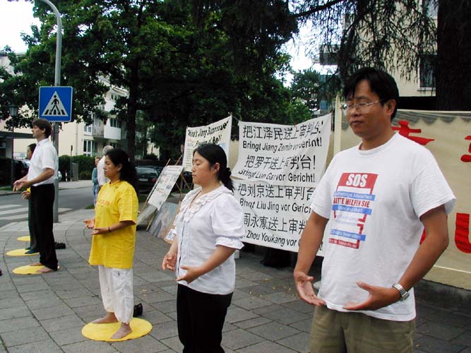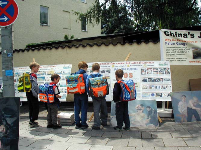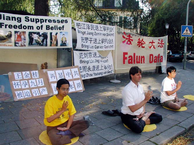 在法轮功学员慕尼黑中领馆的集会过程中,很多德国人在了解了发生在中国的毫无人性的迫害事实之后,均表示震惊和愤慨,有的提出要捐款给法轮功(当得知不收捐款后,他们又询问其它帮助办法)、有的要签名支持法轮功,有的表示要好好看看法轮功的资料。