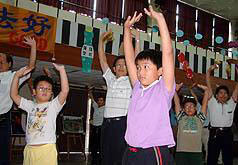 ![]() 小朋友也与爸妈一起参加学习法轮功 |