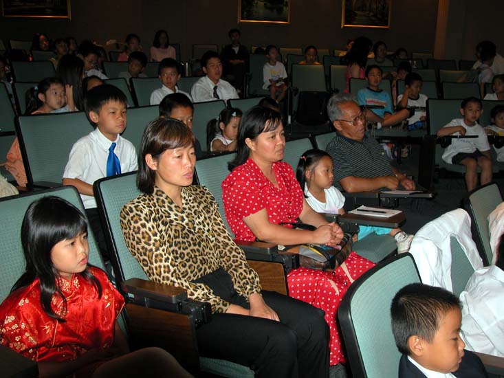 修炼心得交流之后,华盛顿DC明慧学校的小弟子,为大家演唱了“我想说句话”等歌曲。他们还受邀在大人们的修炼心得交流会上再次演唱。纯净的童音回响在大厅,感动了在场的所有人。“我想说句话”这首歌,是孩子唱给因不放弃修炼被警察抓走的爸爸妈妈,鼓励他们要坚持下去,领唱的小弟子在唱到“千万不要把我牵挂,快快讲真象,救度世人啊!”时,声音哽咽了,孩子的善良纯真令很多人感动得眼眶湿润。