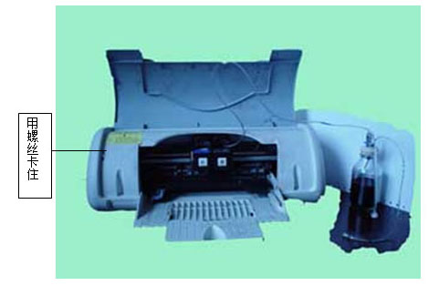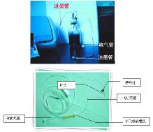 将注射器的“针头帽”剪掉头,从输液瓶瓶盖中心插入,再将進墨管放入。注接口处可用“哥俩好”胶水封口。
