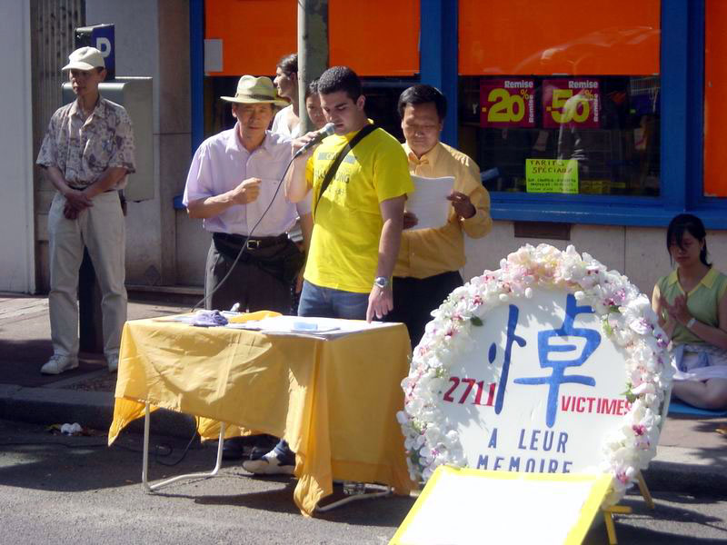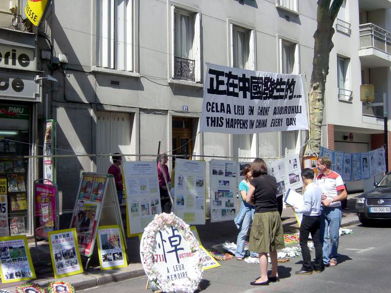 自1999年7月20日,中共江泽民集团发动了对法轮功的迫害,迄今已长达六年。特别是江泽民出于小人妒嫉,一意孤行,违反宪法,利用手中的权力开始了对法轮功的非法镇压。为了揭露江氏与中共犯下的罪恶。6年来,法国法轮功学员坚持不懈的揭露迫害、讲清真象,每年7.20都在中领事馆前举行悼念同修和呼吁制止迫害的活动。